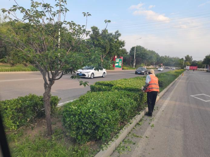 绿茵公司正在对绿篱进行修剪