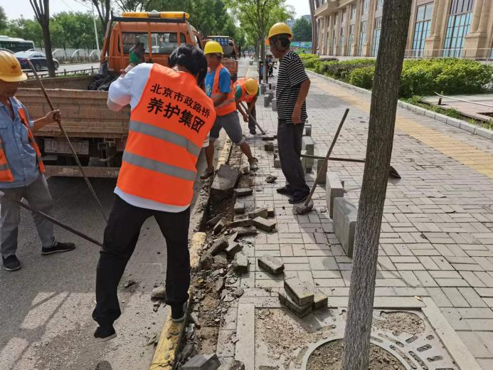 恒发市政公司正在修复步道砖