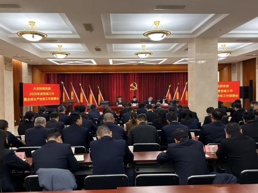 近日,大龙控股党委召开2026年度党建工作暨全面从严治党工作部署会。会议以党的政治建设为统领,紧扣国企党建与中心工作深度融合主线,明确年度党建目标、压实管党治党责任,推动党建引领、监督保障、作风建设一体发力,以党建引领保障企业改革发展与服务区域大局。公司领导班子成员、上市高管、各单位党政正职、党建及纪检工作分管副职、公司机关及上市科室负责人共计70余人参加会议。